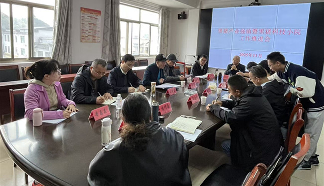 11月10日,黟县柯村镇召开黑猪产业强镇暨黑猪科技小院工作推进会。省农科院研究员、省农技协理事长龚传胜,省农科院畜牧兽医研究所副所长王重龙,省农科院作物研究所副研究员钱益亮,省农科院农产品加工研究所黄晶晶博士,省农技协副理事长、有机肥企业负责人张从军等专家学者,市科协、县科协、县农水局相关领导,柯村镇党政主要负责同志,以及黄山国大生态农业科技有限公司、黄山哼哼哒畜牧农业科技有限公司等企业负责人齐聚一堂,共商柯村镇黑猪产业高质量发展大计,擘画政产学研用融合发展新蓝图。