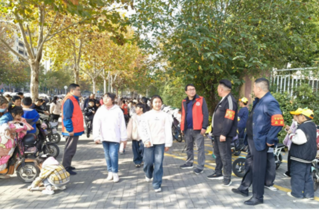 精准“诊疗”见实效,擦亮先锋本色.在社区党支部的号召下,党员护学岗招募信息一经发布,便得到党员们的积极响应。经过自愿报名与集中培训,8名党员迅速组建起“护学先锋队”,同步建立“每日轮岗、分工协作”工作机制,采取“定点守护+动态巡逻”相结合的模式。校门口,他们引导学生有序离校;路口处,他们耐心疏导交通、提醒规范停车;周边区域,他们细致排查台阶、车辆盲区等安全隐患。党员志愿者以务实细致的服务,有效缓解了交通压力,消除了潜在风险,赢得了家长们的广泛认可:“有他们在,我们接孩子更踏实、更放心!”