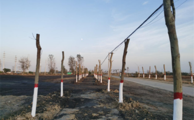 施工过程中,社区统筹调配挖掘机等机械设备,组织工作人员协同作业,严格按照栽种规范完成挖坑、扶苗、填土、压实等工序,确保苗木栽种规范到位。目前,新栽梧桐树已整齐排列,为区域增添了鲜活绿意。