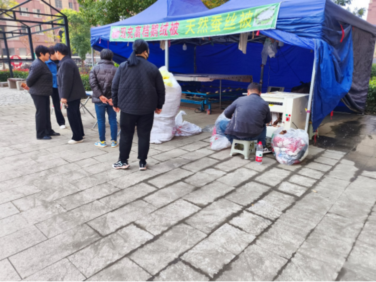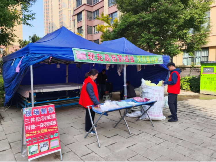 时至冬日,保暖需求迫切,服务点的推出恰逢其时。专业师傅驻场拆解、筛选旧绒制品,按需定制保暖新被,2小时左右即可取货,价格亲民透明。社工在现场协助引导、维护秩序,让整个流程井然有序。居民们纷纷将囤积的旧物从楼道或家中搬出送检,“这些旧羽绒服堆楼道占地方,扔了又可惜,现在能打成厚实的新被子,冬天盖着暖和,楼道也清爽了!”刚取到新被的王大妈连连点赞。连日来,服务点有效消化了大量居民囤积的旧绒制品,楼道堆积问题得到缓解。