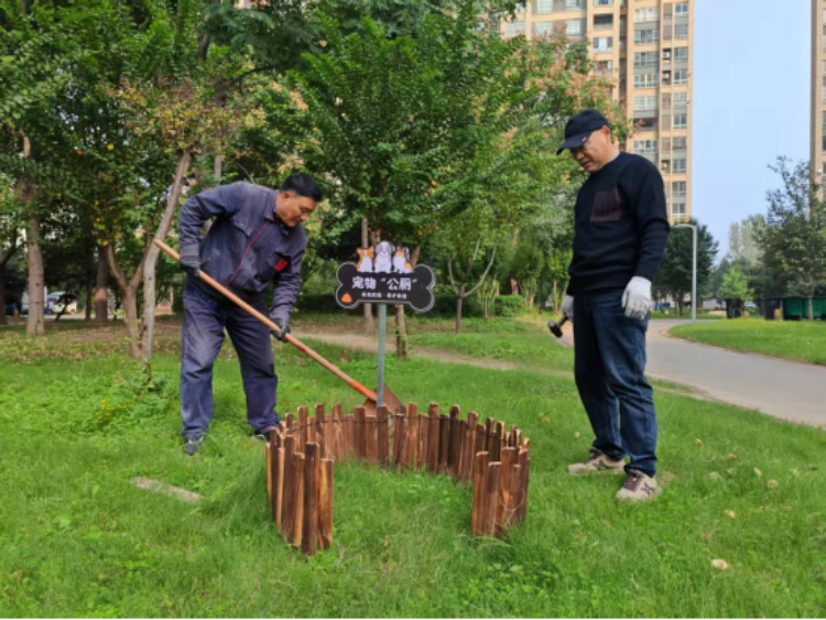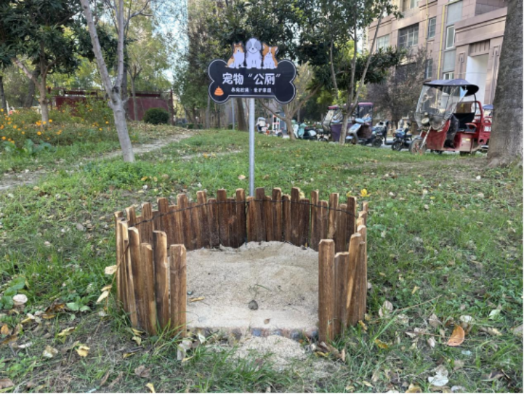 此前,小区内宠物粪便清理不及时问题突出,不仅影响环境美观与公共卫生,也易引发邻里矛盾。为此,五里湾社区网格员通过实地走访与居民议事会征集意见,最终决定利用闲置角落,打造集实用与美观于一体的宠物公厕。公厕内铺有厚实细沙,方便宠物如厕后掩埋,并配有卡通提示牌与免费垃圾袋,引导居民文明养宠。圆形围栏的设计清晰划定区域,物业也安排专人定期维护,确保设施持续可用。家有金毛犬的张女士感慨道:“之前带狗出来遛弯,总要跟在它后面不停地收拾,现在建了‘宠物公厕’,经过训练后,狗养成了定点排泄的习惯,我就不用那么累了,而且也极大地避免了因未及时清理粪便导致的环境问题和邻里纠纷。