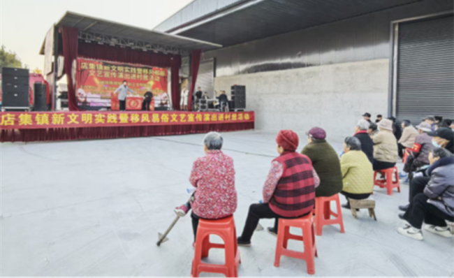 为丰富群众精神文化生活,以生动形式弘扬文明新风,近日,涡阳县店集镇新时代文明实践和农业农村发展中心联合镇新时代文明实践所、镇妇联等部门,共同将一场场精彩纷呈的“新时代文明实践暨移风易俗文艺宣传演出”送至各村居,让群众在家门口享受文化盛宴的同时,将移风易俗的理念深植心中。