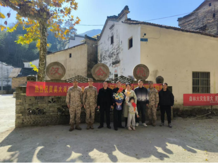 近日,休宁县山斗乡迎来了1名光荣退役的军人吴大海返乡。乡党委政府高度重视退役军人安置工作,乡村干部在其家门口举行简朴而热烈的欢迎仪式,乡退役军人服务站工作人员为他献上鲜花,传递家乡的温暖与敬意。