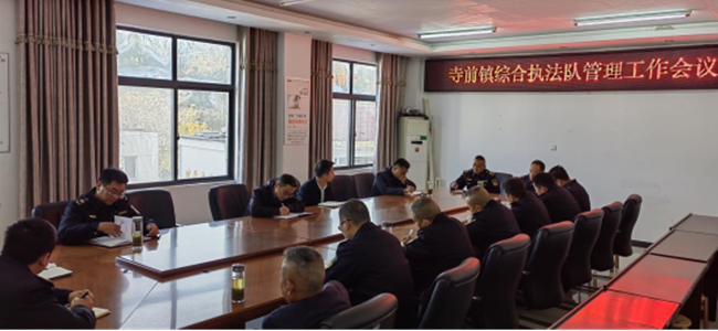 为深化基层管理体制改革、推进基层治理现代化,近日,太湖县寺前镇召开综合执法队管理会议。镇党委、政府主要负责同志、相关职能部门负责人及执法队全体队员参加会议。
