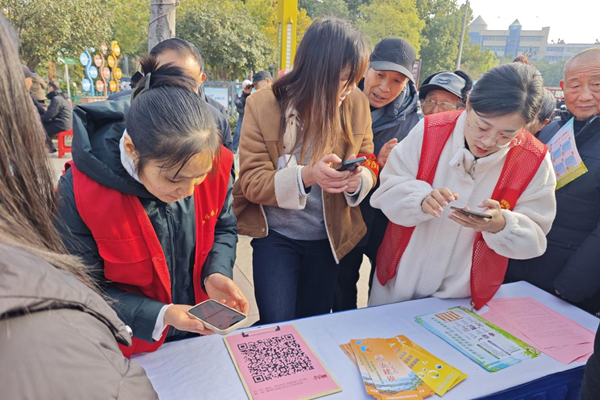 活动现场,志愿者们搭起宣传展台,摆满小风扇、围裙等精美礼品,瞬间吸引不少居民驻足咨询。“阿姨,您扫这个二维码就能下载,不仅能看新闻、学知识,还能听戏曲、查医保政策,特别实用!”志愿者们耐心指导大家操作,从APP下载注册、账号登录,到课程订阅、积分兑换,一步步手把手教学,还现场演示“每日答题”“挑战答题”等趣味板块,让大家直观感受平台的丰富内涵。