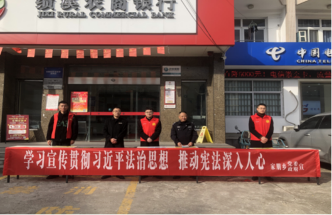 除了前往学校讲解宪法内容外,家朋司法所还创新开展“送法行动”,联合家朋乡农商行在村口设置宣传台,现场为群众解答关于宪法的疑问,用通俗易懂的语言阐释“宪法的生命在于实施,宪法的权威也在于实施”的深刻内涵。通过面对面宣传、点对点答疑,不仅拉近了与群众之间的距离,也更好地引导了群众树立法治观念,切实增强群众宪法意识,营造办事依法、遇事找法、解决问题用法、化解矛盾靠法的良好氛围,让习近平法治思想和宪法精神更加深入人心。