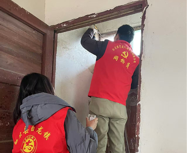 在镇东社区独居老人谢长银家中,志愿者详细询问其身体状况和生活需求,细心排查居住环境中的安全隐患。走访中发现,老人二楼窗户漏风,严重影响冬季保暖。志愿者们立即行动,拿出提前准备的密封材料和工具,分工协作测量尺寸、加固窗框、安装密封胶条,有条不紊地完成窗户检修与安装工作。看着密封严实、不再漏风的窗户,谢长银老人紧紧握住志愿者的手,连连道谢:“这么冷的天,你们还特意来帮我修窗户,真是太贴心了!”