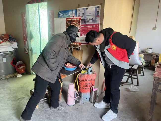 针对五保老人王恩科的实际需求,同心社区的志愿者化身“安全卫士”,他们逐一检查了老人家中的煤气管道、电路开关和水龙头等设施,仔细排查是否存在泄漏、老化等安全隐患,并现场向老人讲解安全常识,再三叮嘱老人冬季取暖务必保持通风,养成安全用电用气习惯。