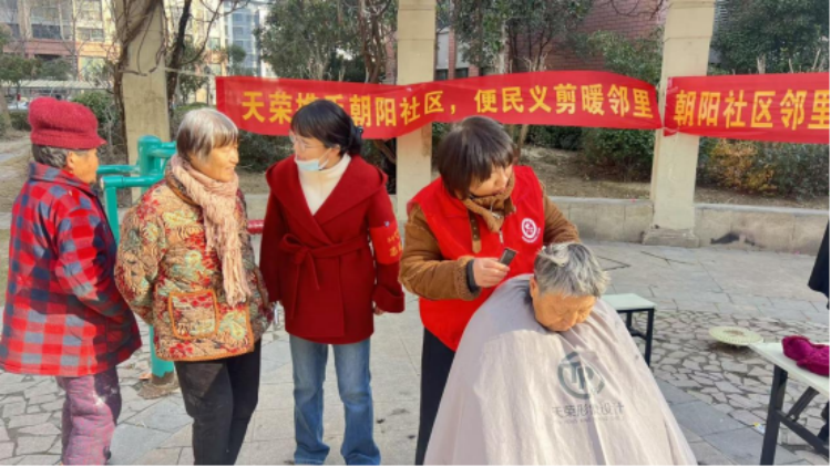 另一边的便民义剪专区,理发师志愿者们忙得不亦乐乎。他们细心询问每位居民的发型需求,娴熟地挥动剪刀与梳子,耐心为老人、儿童和有需求的居民修剪发型。剪完头发的居民看着镜中清爽利落的新造型,纷纷竖起大拇指:“不出社区就能免费理发,新年从头焕新,太贴心了!”