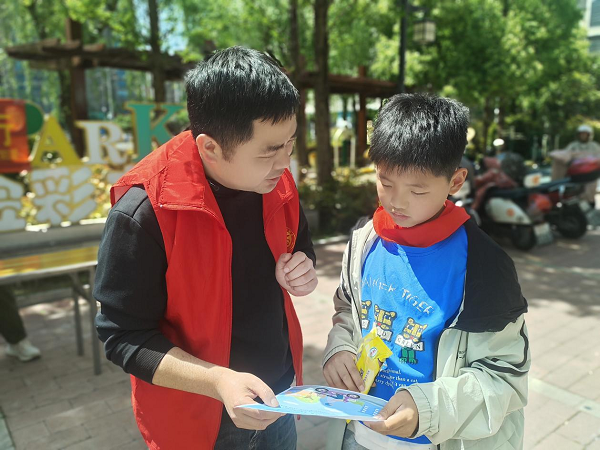 活动现场,社区志愿者在光明路小学放学高峰期时段,协助学校维护校门口交通秩序,并发放交通安全宣传单页,用通俗易懂的语言,向学生及家长着重讲解驾乘摩托车、电动车佩戴安全头盔的重要性和安全性,尤其是在学校附近,一定要减速慢行,不闯红灯、不乱穿马路,时刻注意交通安全,做到守法规、知礼让,安全文明出行。