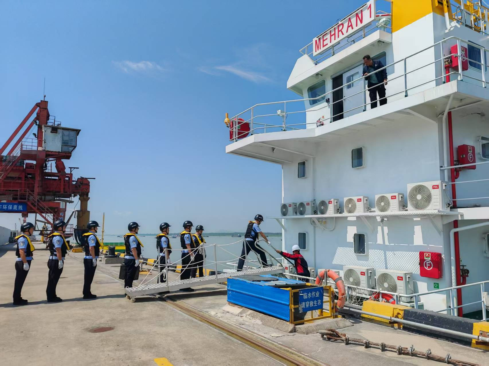 “这两艘出境船舶有来自印度、印度尼西亚等国家的27名国际海员负责船上作业,针对这一情况,我们根据‘一船一策’通关方案,在保障安全的前提下,全流程开启‘绿色通道’,确保以最短时间完成船舶查验任务,尽最大努力营造安全有序的口岸通关环境,全面提升企业群众获得感。下一步,我们将继续紧贴航运企业和经济社会发展需求,不断优化边检服务举措,全面促进航运企业发展,为巩固我国进出口发展良好态势提供坚强有力的边检支撑,确保更多‘中国制造’走出国门、走向世界。”池州边检站边防检查处副处长曹敬金说道。