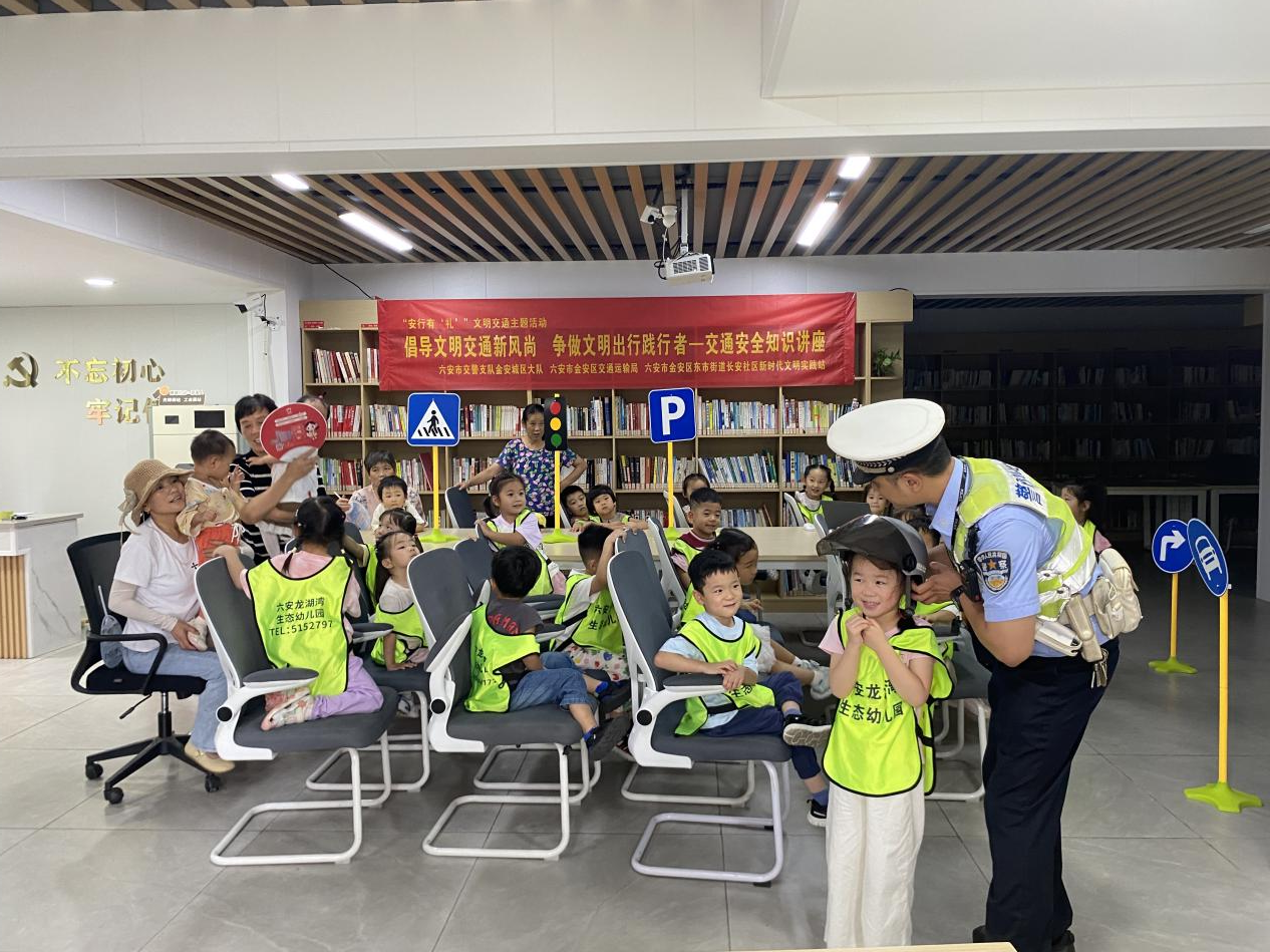 为进一步普及道路交通安全知识,增强居民交通安全法律法规意识,有效预防和减少道路交通事故的发生,营造文明、有序、畅通的交通环境。2025年9月17日,东市街道长安社区新时代文明实践站联合六安市交警支队金安城区大队、金安区交通运输局在龙湖湾阅享空间开展倡导文明交通新风尚 争做文明出行践行者—“安行有‘礼’”文明交通主题活动,身着制服的交警们用接地气的方式,为居民们送上了一堂生动的交通安全课。