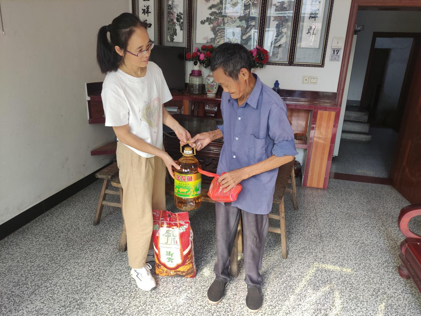 临走前,他们还反复叮嘱我,“要是水管坏了、灯泡不亮了,或者身体不舒服,别自己扛着,赶紧给乡政府打电话,我们马上来。”看着他们离开的背影,我忍不住想,虽然家里人少,但党和政府的关怀就像亲人一样,让这个中秋格外温暖。往后的日子,我也得好好过,不辜负这份牵挂。