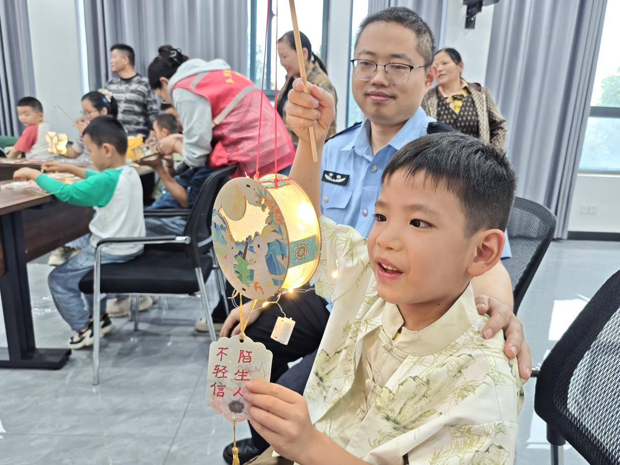 在备受期待的“反诈主题灯笼”制作环节,孩子们纷纷化身小小艺术家,在灯笼上写下“不轻信陌生人”“中奖链接不要点”等反诈标语,并配以警察形象、警示符号等图画,把普通材料变成独具创意的“反诈宣传小卫士”。小小的灯笼,既承载着节日祝福与家国情怀,也点亮了安全防范的智慧之光。活动结束后,孩子们自豪地展示作品,纷纷表示要回家当“小小反诈宣传员”,把学到的知识分享给家人。