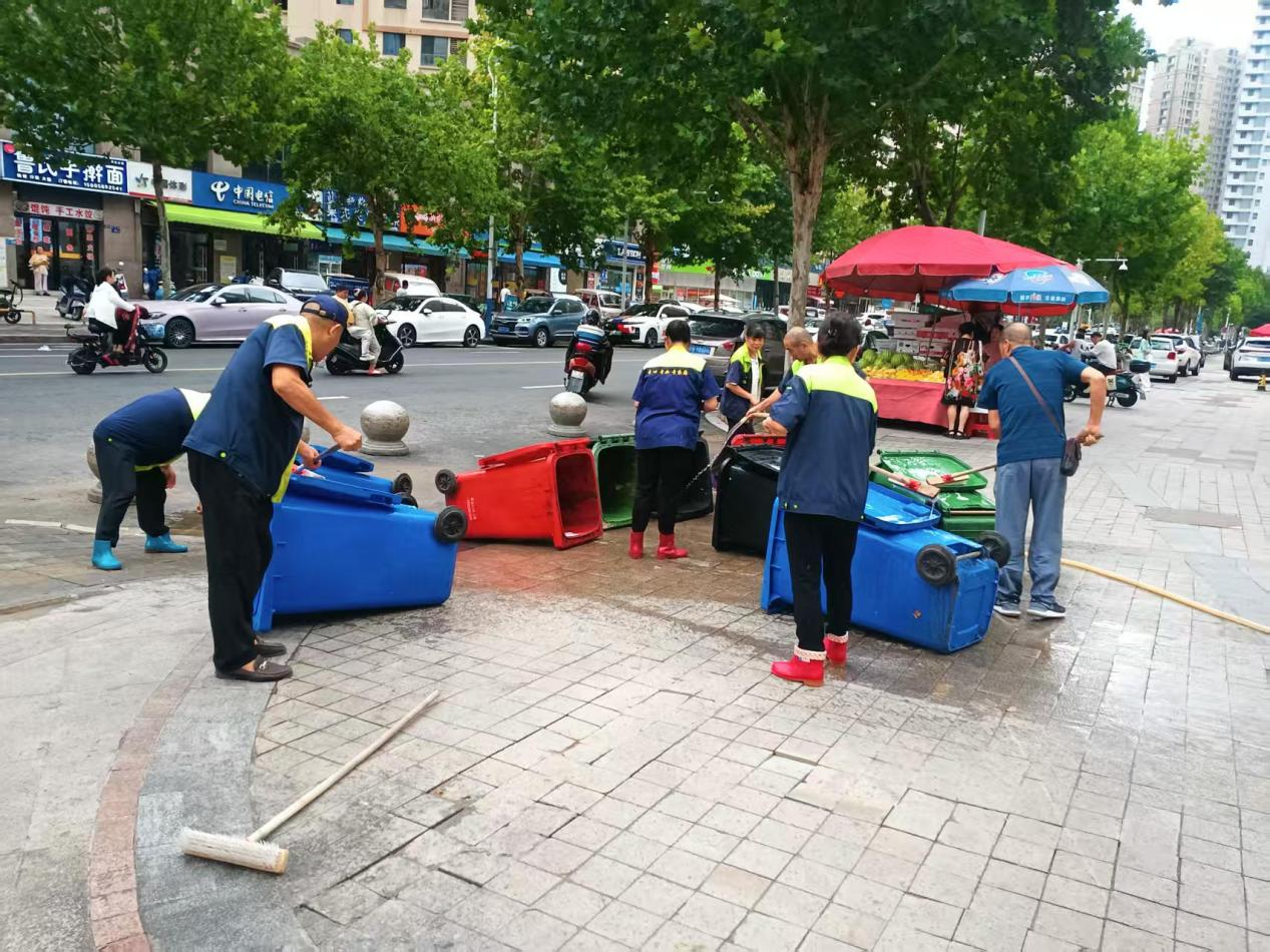 在兴隆路沿线,清洁队伍对道路两侧的果皮纸屑、堆积杂物,以及酒店后门、旅店出入口停车位夹缝处的卫生盲区进行彻底清扫。对于部分难以清理的顽固垃圾如商超进货口的常年污渍和堆积杂物,社区组织志愿者合力搬运、集中清运,确保道路环境整洁有序。结合垃圾分类工作,物业组织工作人员对沿路垃圾桶进行彻底清理,减少蚊虫孳生地。