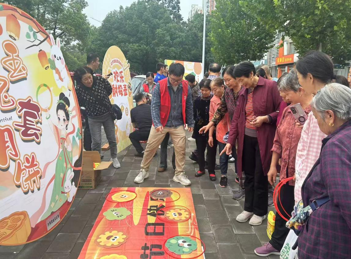 同时,传统习俗与动手乐趣交织,“巧手做花灯 点亮中秋圆”环节中,志愿者手把手带领居民制作中秋花灯,大家沉浸式体验传统手工艺,感受传统的魅力;“玉兔套月饼”游戏里,居民套中圈后需回答党史、国庆知识猜谜,在玩乐中学习;“反诈刮刮乐 安全不松懈”展台通过趣味刮卡答题形式,引导居民学习反诈知识,提升安全防范意识。