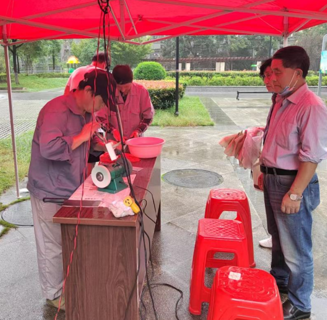 活动现场热闹有序,理发师耐心询问居民喜好,为大家剪出满意发型,大家精神面貌焕然一新。磨刀师傅手艺精湛,让钝了的刀具、剪子重焕锋利,居民连连称赞。工作人员用专业设备精心清洗地毯,使其变得干净整洁,居民感谢不已。义诊区,医护人员认真为居民量血压、测血糖、听诊心肺,针对健康问题答疑解惑并给出建议,助居民了解自身健康状况。
