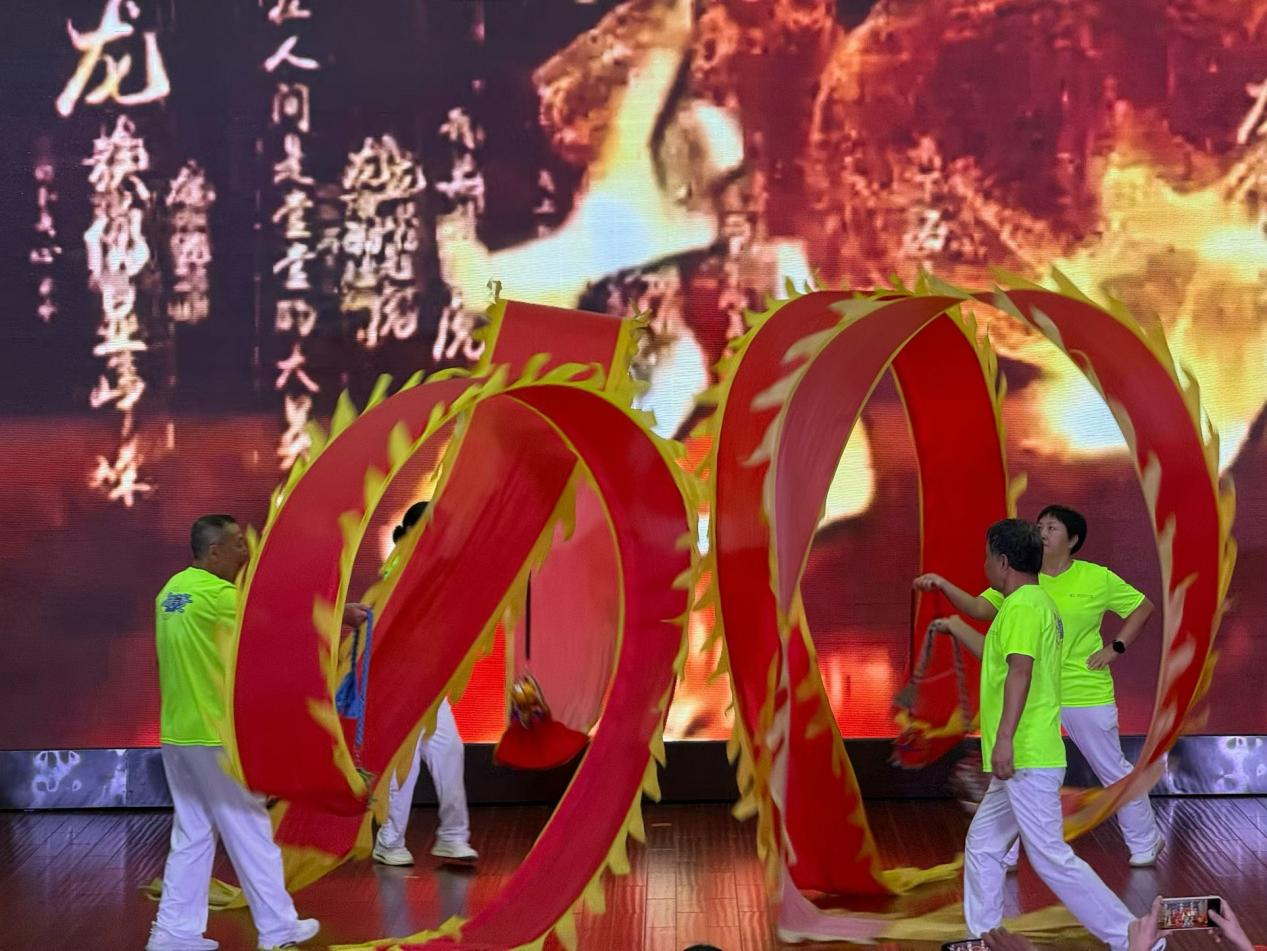 “家国同心 颂歌献双节”篇章聚焦红色记忆与家国深情,《映山红》《江姐之看长江》《山丹丹开花红艳艳》等经典红歌与戏曲接连上演,唤起观众对革命岁月的记忆,传递出浓浓的家国情怀。“活力健康・运动展风采”篇章尽显社区居民活力,健身操《大美中国我的爱》、柔力球《荷塘月色》以及舞蹈《中国龙》等节目,将运动与艺术完美结合,展现了中老年群体昂扬的精神状态和积极的生活态度,赢得现场阵阵掌声。“文化传承・舞韵润心田”篇章彰显文化魅力,从民族舞《吉祥欢歌》到古典舞《绣红旗》,再到现代舞《莲颂》,表演者们用优美的舞姿诠释了中华文化的多样性与包容性。“诗诵风华・剧绘社区魂”篇章以语言艺术传递社区温度,诗朗诵《祖国颂歌》慷慨激昂,三句半《骗子莫来犯,事故靠边站》以通俗易懂的语言普及防骗知识与安全常识,兼具趣味性与教育意义,贴近社区居民生活。最后,在《明天会更好》的大合唱中,将演出气氛推向最高点,也为整场演出画上圆满句号。