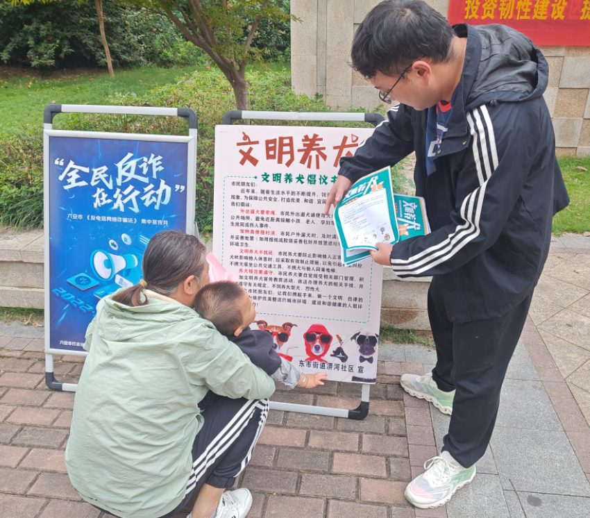 活动当天,社区工作人员与警务室民警在社区人流量较大的广场设置宣传摆台。通过摆放宣传展板、发放宣传资料等方式,向过往居民普及文明养犬知识,重点讲解了养犬登记、疫苗接种、遛犬规范等相关内容,强调不文明养犬行为可能带来的危害,引导居民依法养犬、文明养犬。工作人员和民警还现场解答居民关于养犬的疑问,与居民互动交流,不少居民表示深受教育,今后一定会更加规范养犬。