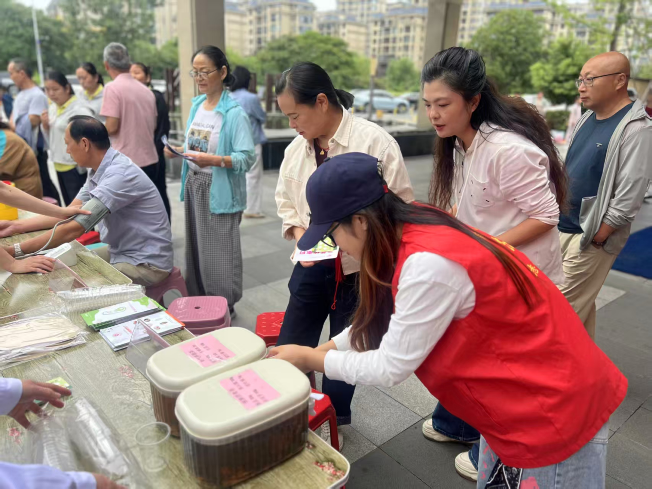 体验传统,乐享手工。现场提供根据时令特点准备健脾消食茶和补气养颜茶,居民们有序排队凭借卡片领取茶饮,现场十分热闹。喝完茶饮后居民转到香囊领取区,本次配备的香囊有着助眠、通鼻、感冒预防的功效,备受居民的喜爱。一些带着儿童的家长特意来参加活动只为领取香囊。药膳手工扇制作区域,小朋友们动手将药材与创意结合,制作出独一无二的健康工艺品。拔火罐体验区居民们亲身感受中医外治法的魅力。整个活动现场充满了欢声笑语,居民们不仅在健康上有所收获,更在互动中拉近了彼此的距离。