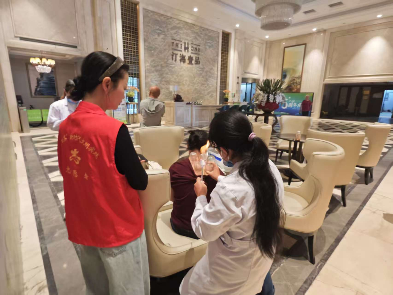(图为居民参与拔火罐活动)