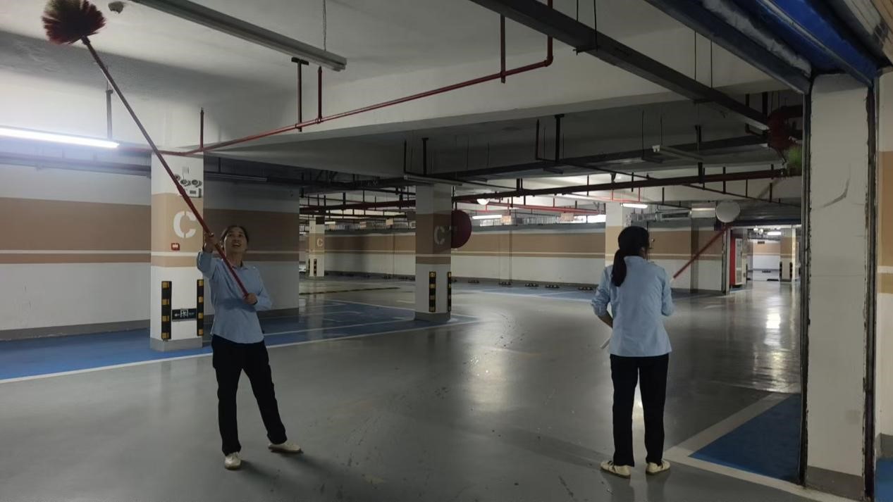 经过一天的集中清理,地下车库内的蜘蛛网被彻底清除,墙面、管道及灯具周边重现洁净,整体环境卫生得到显著提升。驾车出入的居民纷纷对此表示赞许:“以前角落里的蜘蛛网看着很不舒服,现在干净多了,开车经过心情都舒畅了。感谢社区和物业为咱们办实事!”