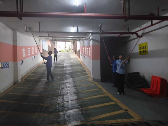 清理行动当天,由社区工作人员、物业保洁及热心居民志愿者组成的清理队伍,携带扫帚、抹布、梯子、喷壶等工具,按计划对地下车库各楼栋出入口、通道拐角、消防设施周边、管线连接处等蜘蛛网易发区域展开全面排查与清理。面对位置较高的蜘蛛网,工作人员借助梯子登高作业,互相配合、分工有序——有人负责清扫高处蛛网,有人用湿抹布擦拭残留污渍,还有人及时清理落地杂物,确保不留卫生死角。清理过程中,大家也特别注意保护车库内的消防设施、照明设备及停放车辆,避免造成二次损坏。