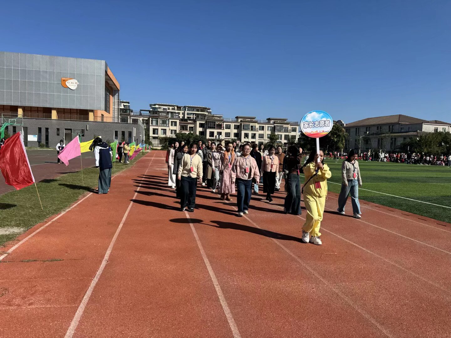(图为志愿者和家长方阵队)