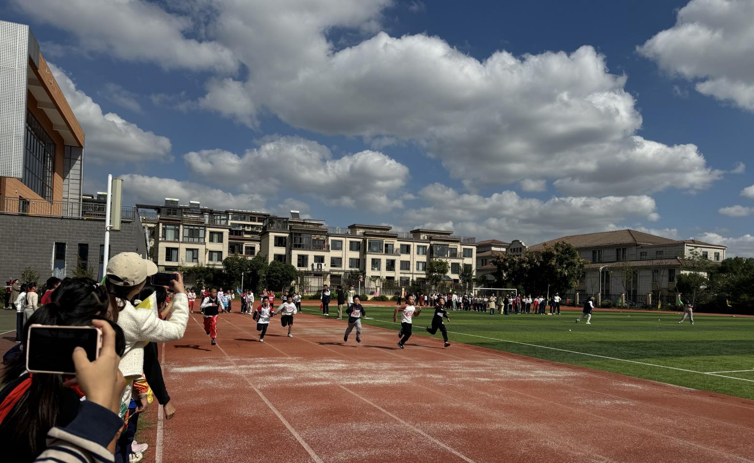 (图为学生接力赛、铅球比赛)