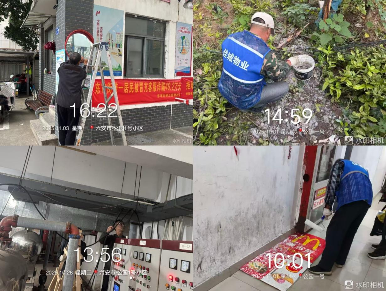 此次业主接待日活动中,业主们围绕居住体验积极建言,提出小区大门存在视线盲区、入户门褪色掉漆、水泵房电缆老化、树枝遮挡采光等问题。接待结束后,三方第一时间召开专题研讨会,对业主诉求逐一梳理研判,形成“清单化推进、闭环式落实”的工作方案:一是在小区大门处加装安全镜,精准消除视线盲区,从源头规避出入通行安全隐患;二是对小区入户门进行统一粉刷,修复破损痕迹、刷新楼栋入口观感,同时增强门体防护性;三是更换水泵房老化电缆线路,彻底清除用电安全隐患,保障小区供水系统稳定运行;四是组织专业人员对过密、过高及枯腐树枝进行科学修剪,解决低层住户采光遮挡问题,降低极端天气坠枝风险。