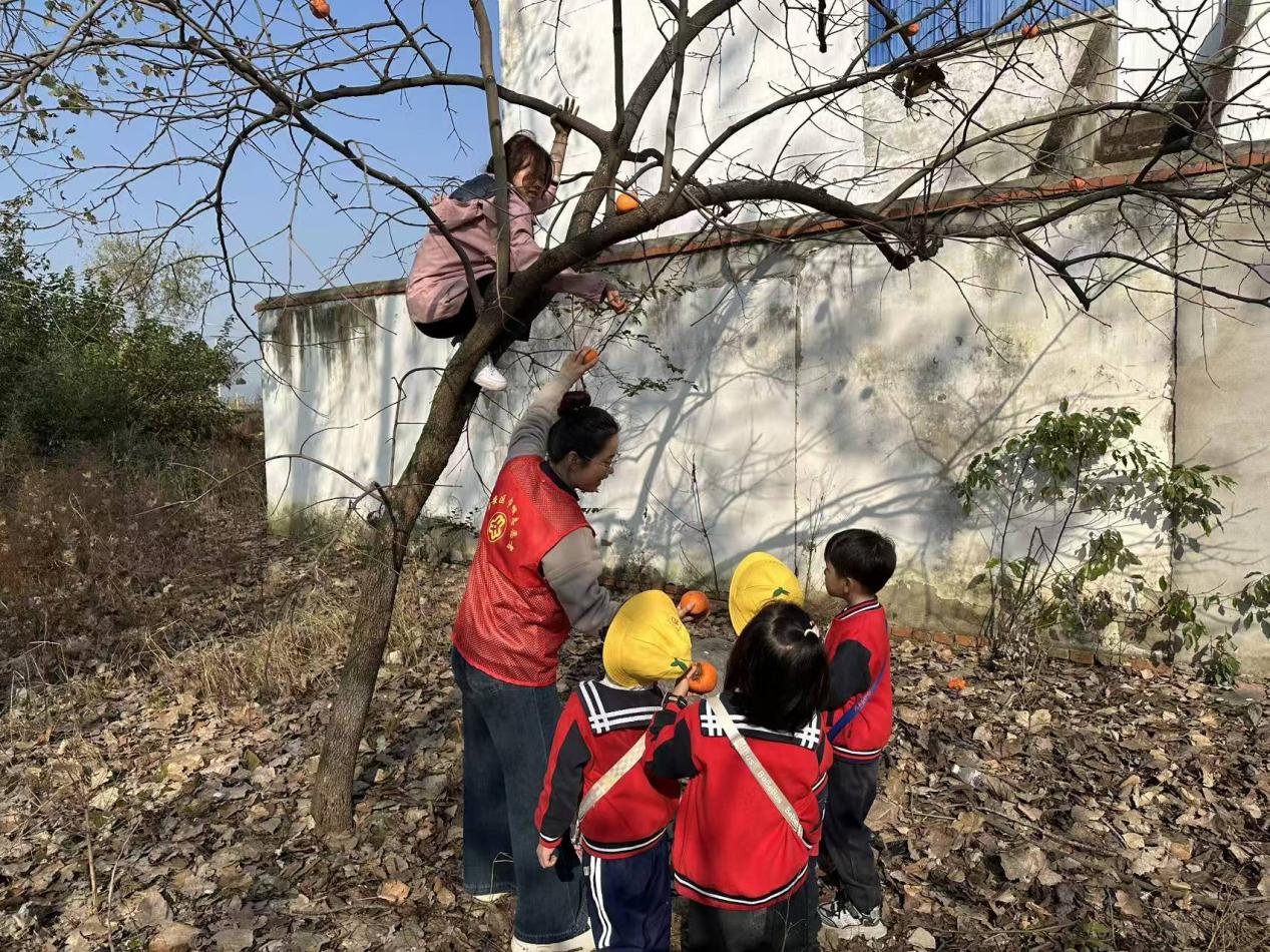 活动当日,秋高气爽。在社区志愿者和老师的带领与看护下,孩子们首先兴致勃勃地来到了种植区。他们手持小工具,在红薯地里仔细地探寻、挖掘,每当发现一个硕大的红薯,便兴奋地向同伴们展示,田间地头充满了欢声笑语。随后,孩子们又合作采摘了挂满枝头、金黄饱满的柿子,在亲手实践中感受着秋天丰收的喜悦。