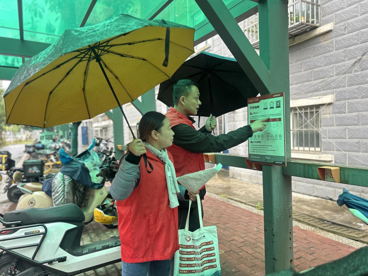 针对小区楼道堆物、消防通道堵塞等突出问题,党支部联合业委会发起“清障护安”行动,微网格红色管家逐栋入户宣传动员,保障消防通道宽度始终符合规范;聚焦电动车违规充电这一高频隐患,通过“三方议事会协商+业委会提案”确定解决方案,依托老旧小区改造增设智能充电棚106个、充电端口1119个,配备过载保护、自动断电等安全装置,从源头遏制火灾风险,同时物业每周开展电气线路巡检,微网格红色管家协助排查上报,形成共管合力。