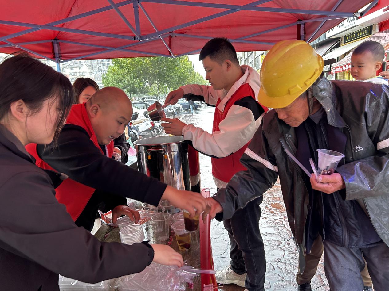 活动结束时,雨势渐小,阳光透过云层洒下微光,此次送姜茶活动是社区“邻里互助”系列公益活动的一部分,未来社区将持续开展各类公益服务,让社区更有温度、更具凝聚力。”本次活动共为社区居民、户外工作者等送出热姜茶100余杯。这场雨中的公益行动,不仅驱散了立冬的寒意,更拉近了邻里距离,成为社区精神文明建设的生动实践。