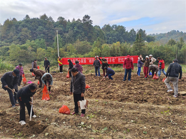 活动现场,志愿者们预先备好了锄头、红色塑料袋、小铲子等工具,并向大家详细讲解了挖红薯的技巧以及注意事项。现场氛围热烈,大家三五成群,分工合作,有的挥动锄头奋力刨挖,有的则忙着搬运、分拣、称重、装袋。