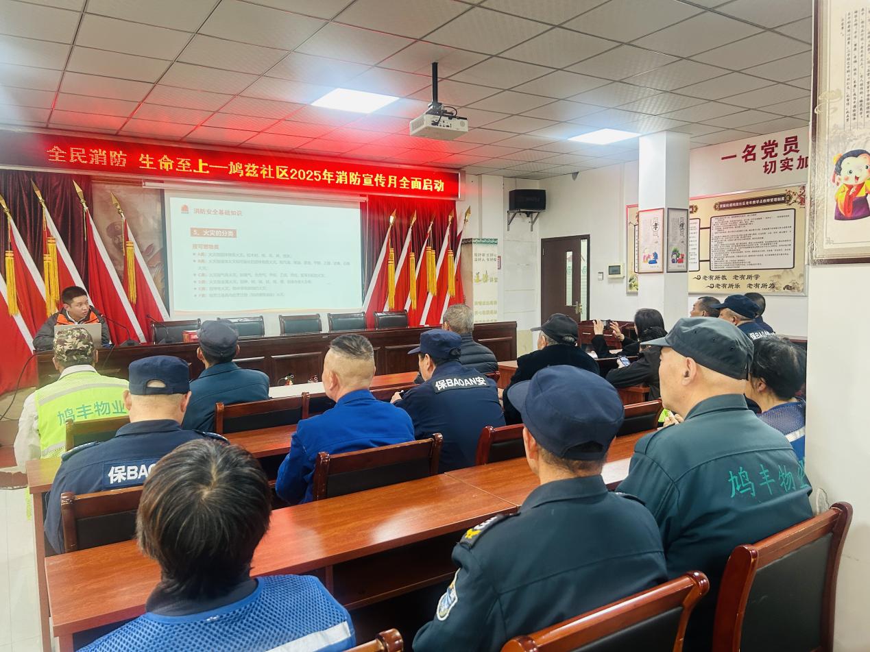 响应号召聚合力,退役老兵齐参训。在2025年全国消防宣传月“全民消防 生命至上”主题号召与第34个全国消防日来临之际,芜湖鸠江区官陡街道鸠兹社区退役军人服务站依托鸠兹社区新时代文明实践站“红鸠领航,公益赋能”五社联动创新基层治理项目,携手芜湖市新希望社会工作服务中心、芜湖市象啦啦消防职业培训学校,精心策划“全民消防 生命至上”主题培训。社区退役军人、物业安保人员及居民志愿者骨干踊跃参与,以沉浸式学习姿态筑牢社区安全屏障。