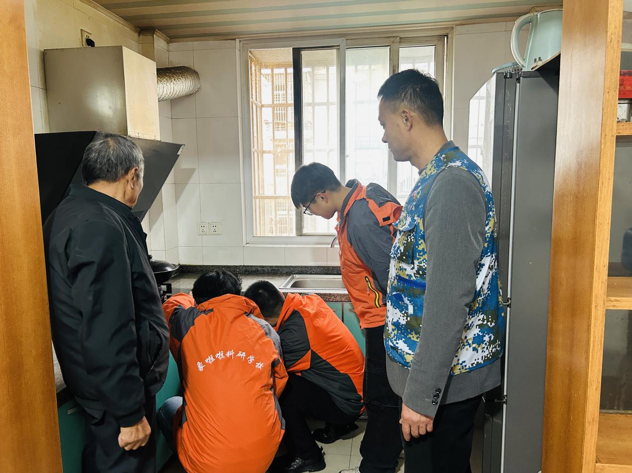 图为在居民家中检查燃气安全现场