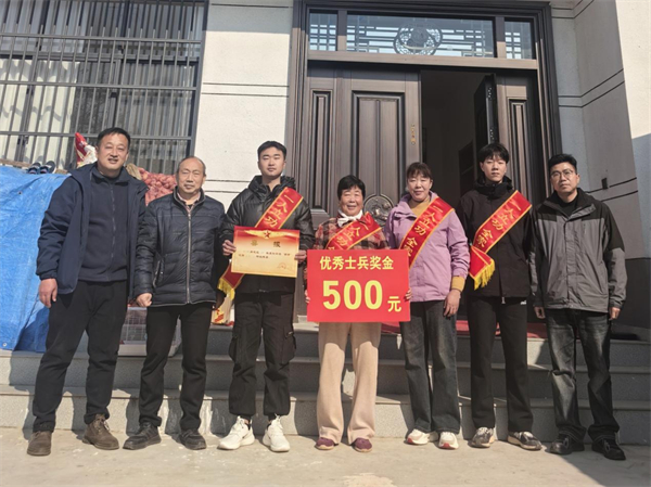 近日,萧县永堌镇退役军人服务站工作人员携带“四有”优秀士兵荣誉喜报,前往秋季退伍返乡的郭申澳家中,将其服役期间荣获的表彰喜报郑重送达。