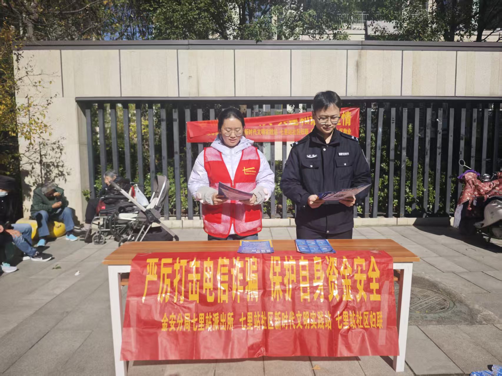 为切实提升居民防诈识诈能力,守护群众财产安全。近日,六安市金安区东市街道七里站社区联合金安分局七里站派出所,在中梁香缇学府小区开展“严厉打击电信诈骗,保护自身资金安全”主题反诈宣传活动。