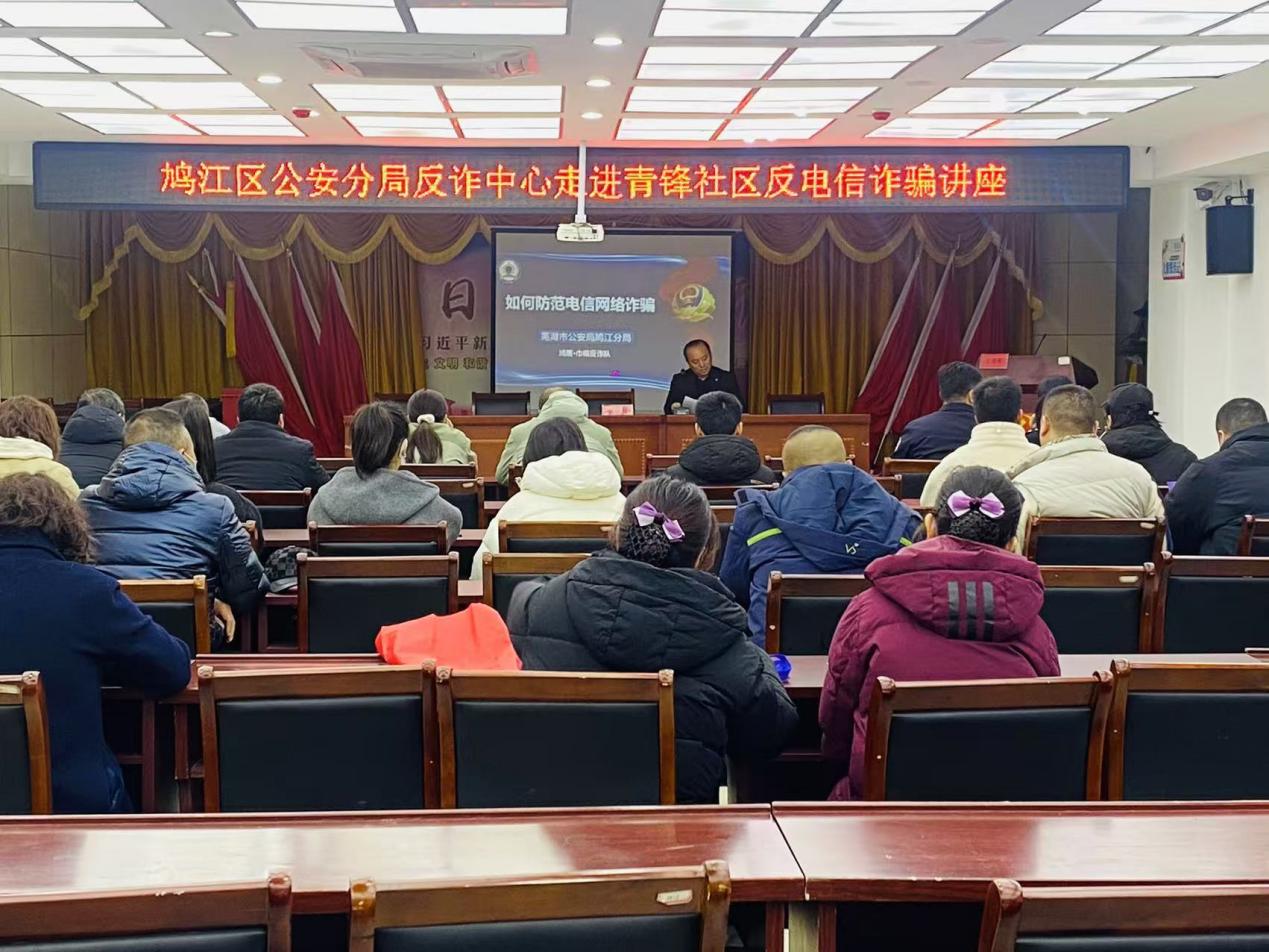 此次反电信诈骗讲座,不仅让青锋社区居民掌握了实用的反诈知识,更搭建了警民沟通的桥梁,形成了“全民反诈”的良好氛围。鸠江区公安分局反诈中心与青锋社区将以此次活动为契机,持续深化合作,不断探索创新反诈宣传形式,为守护居民财产安全、维护社会稳定贡献力量。