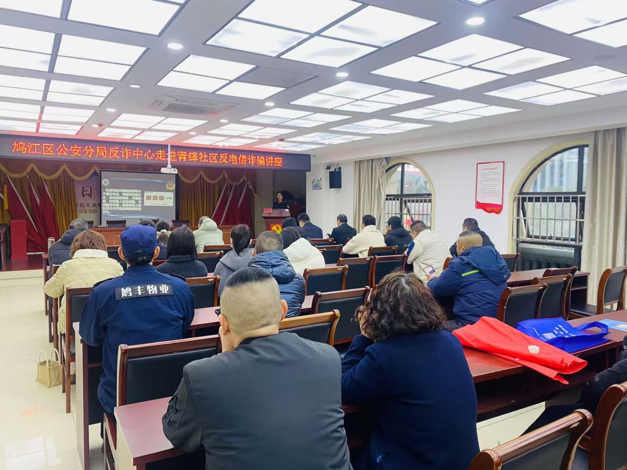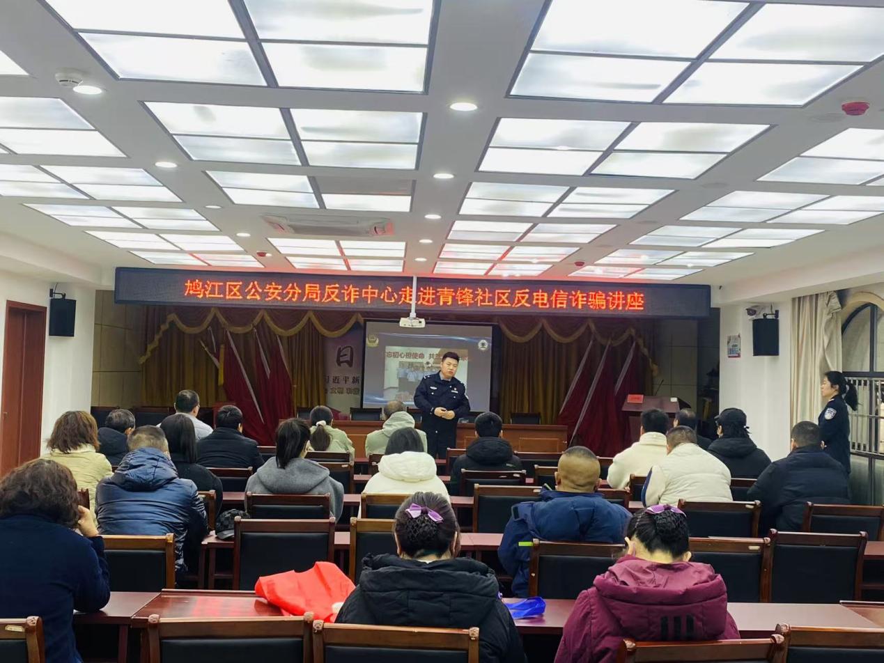 为切实提升社区居民防范电信网络诈骗的意识和能力,构建全民反诈、全社会反诈的严密防线,2025年12月12日,芜湖市鸠江区官陡街道青锋社区联合鸠江区公安分局反诈中心,开展了一场主题为“识破诈骗套路,守护财产安全”的反电信诈骗专题讲座。活动吸引了社区内百余名居民参与,现场通过案例剖析、知识讲解、互动答疑等形式,将反诈知识送到居民“家门口”,取得了良好的宣传效果。