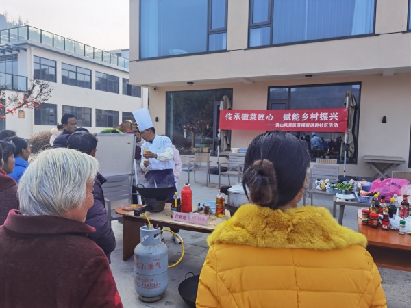 为进一步弘扬劳模精神,传承文化美食,提升村民徽菜制作技能,助力民宿经营提质升级和村民创业增收。近期,黄山市黄山区龙门乡轮渡村驻村工作队主动对接,联合黄山风景区管委会工会于12月17日在轮渡村共同举办“传承徽菜匠心 赋能乡村振兴”劳模宣讲进社区活动,成功搭建起劳模名厨与民宿经营者的技能交流平台,通过现场教学、互动实践等形式,将专业的烹饪技艺送到村民家门口,为乡村文旅发展注入新动力。