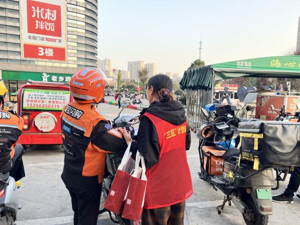 创新治理机制,搭建“有事好商量”的协同平台。“商圈共治议事会”促进服务精准化:定期组织商场负责人、物业管理人员及工作人员召开议事会,商讨外卖员、商户员工等群体的切实需求,共同设计关怀措施。通过此机制,促成了停车取餐流程优化、公共休息区改善等多项实事,使服务从“单向供给”转向“按需定制”,提升了商圈服务的针对性与有效性。“清小哥”志愿红服务队激活社区潜能:成功招募10余名骑手组成志愿服务队。他们凭借自身职业优势,主动参与社区平安巡查、文明宣传等公益服务,成为社区的“流动探头”。该举措不仅延伸了治理触角,更激发了群体参与社区事务的内生动力,形成了“受助-互助-共建”的良性循环。