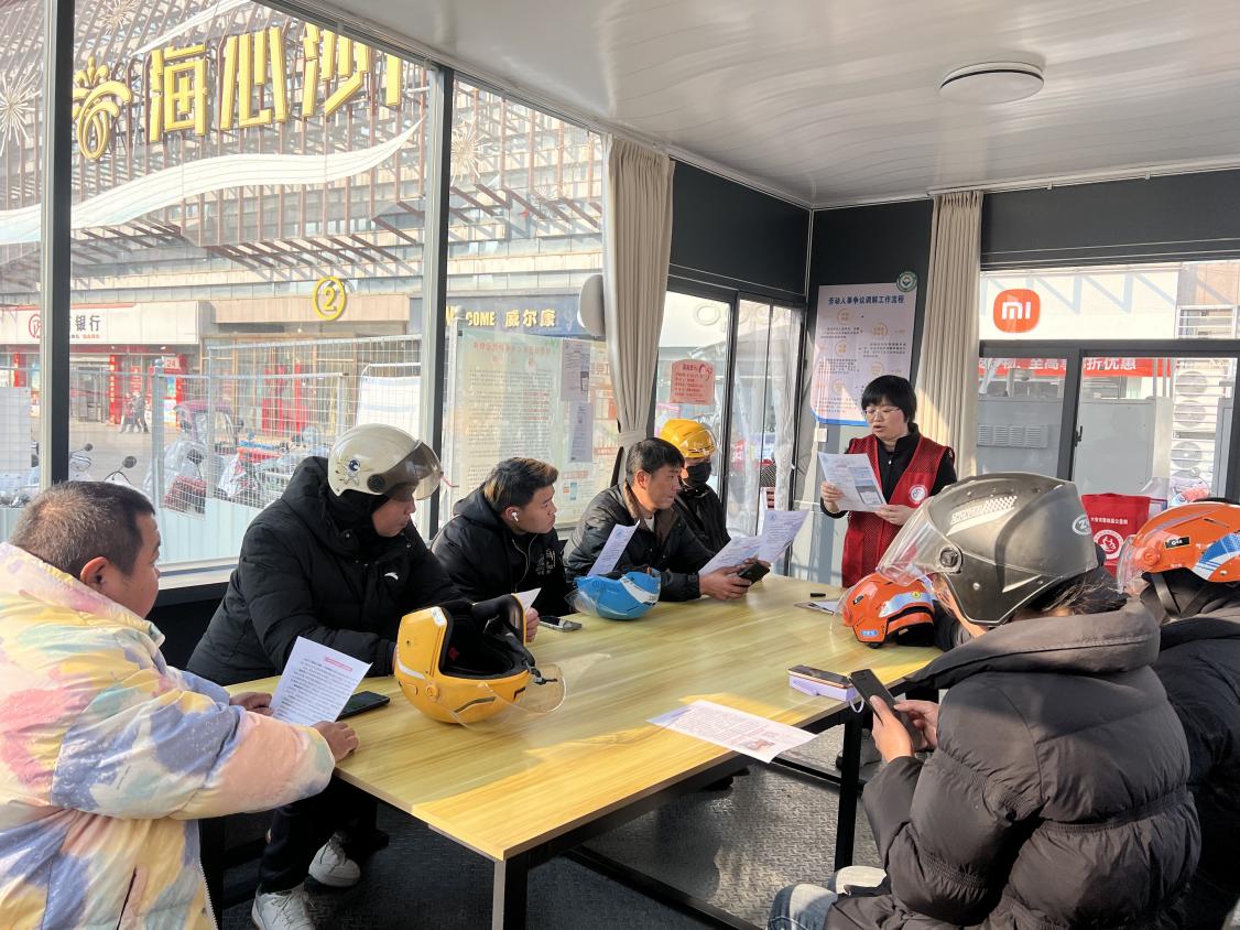 链接专业力量,搭建“难有所助”的赋能平台。“主题宣讲”破解健康与法律难题:积极链接专业资源,将服务从基础关怀升级为专业赋能。联合专业口腔机构开展的“微笑守护”义诊,为30余名骑手提供了免费口腔检查与治疗建议,有效解决了他们“无暇顾及健康”的痛点。同时,围绕劳动权益、交通安全等主题的讲座,提升了群体的风险防范与依法维权能力。“纠纷调解”充当可信赖的稳定器:服务站以“简单分级+快速响应”机制为抓手,成立以“商圈管理员+专业社工+资深商户”为核心的调解队伍,成功调解了包括劳务纠纷、配送争议在内的3起矛盾。这一机制不仅化解了冲突,更传递了“办事依法、遇事找法”的法治观念,成为维护新就业群体合法权益的坚实后盾。