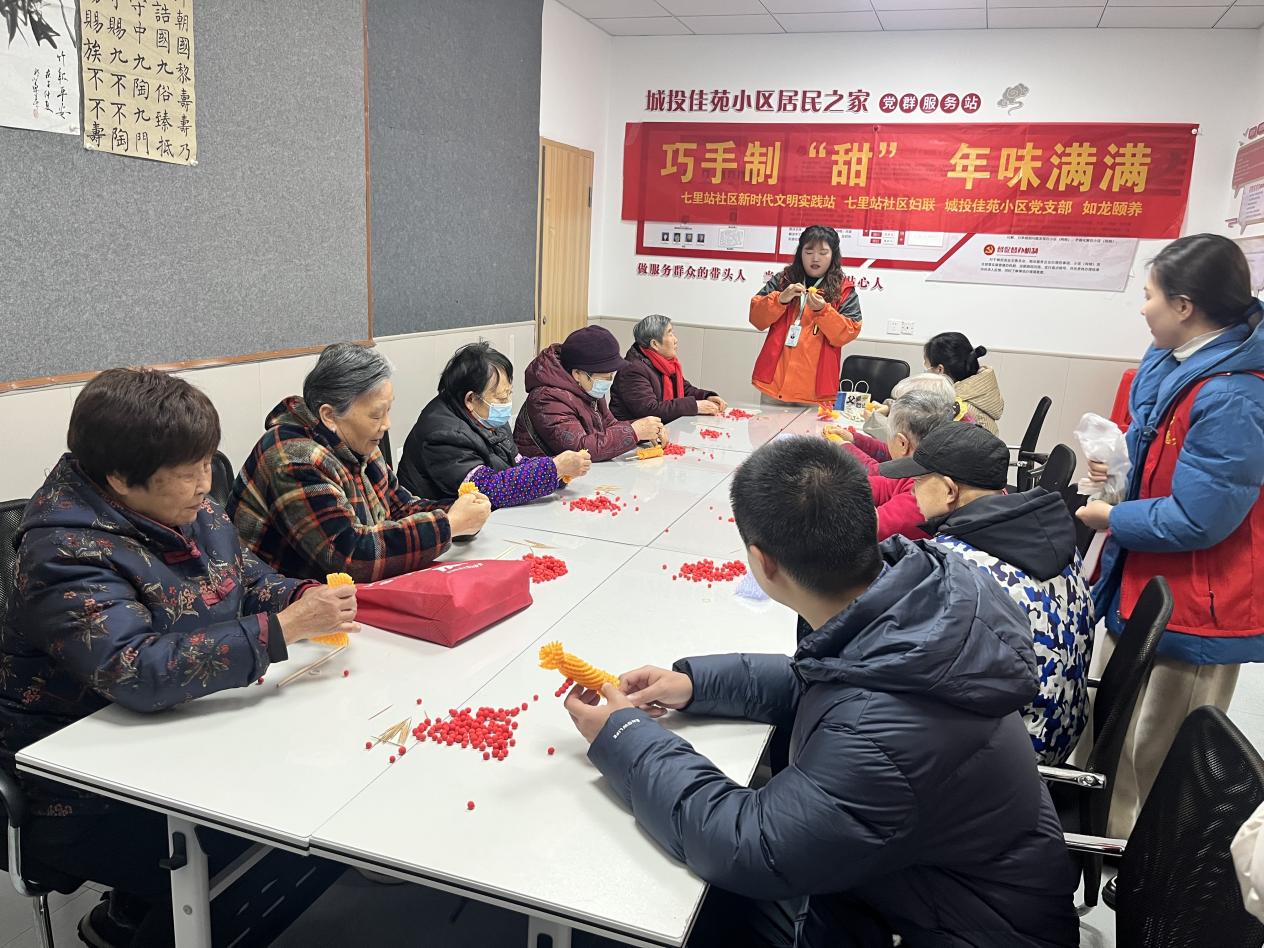 为丰富辖区老年人及特殊人士的精神文化生活,营造温馨喜庆的节日氛围,12月25日,六安七里站社区新时代文明实践站组织开展了“巧手制甜 年味满满”创意黏土手工活动,带领大家亲手制作黏土糖葫芦,在动手中感受两节气氛与社区温暖。