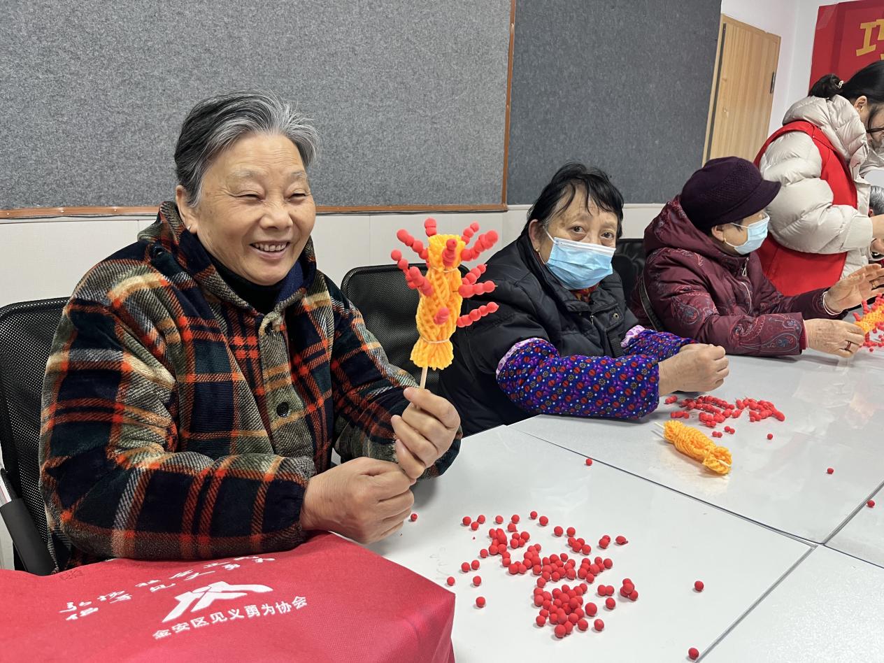 活动中,老人们相互交流技巧,分享童年记忆里的糖葫芦故事;特殊人士也在志愿者一对一的协助下,完成了属于自己的作品。现场笑声不断,气氛温馨融洽。今年72岁的李奶奶拿着作品高兴地说:“自己做的糖葫芦不会化,还能一直摆着看,心里觉得甜甜的,年味也更浓了!”