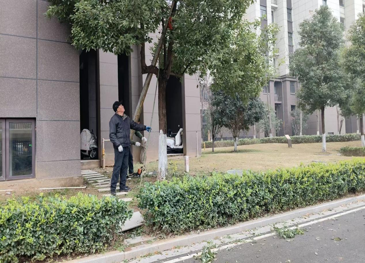 近日,气温持续走低,六安市金安区清水河街道九州府小区园区内部分树木枯枝、病枝易因低温干枯脱落或受风力影响断裂坠落,给居民出行和财产安全带来潜在风险。在六安市金安区清水河社区党总支的指导下,九州府小区党支部联合物业开展冬季大树修剪专项行动,以党建引领打通服务群众“最后一公里”,用务实举措筑牢民生安全防线。