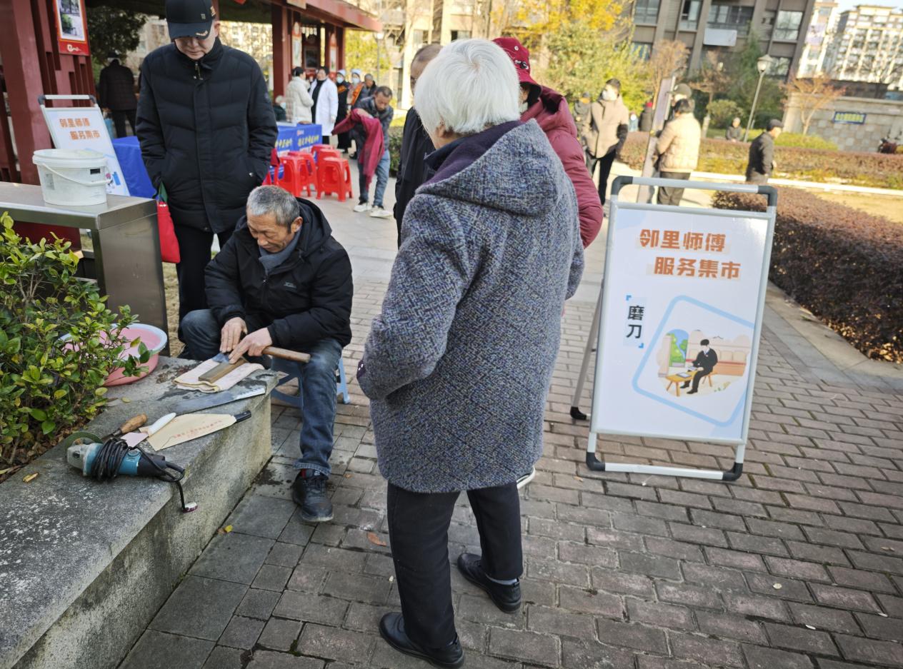 服务聚焦居民日常生活需求,精心设置了理发、中医把脉问诊、地毯清洗、刀具打磨等多个实用服务项目。现场气氛热烈,居民们纷纷前来体验,在各个服务摊位前有序排队,享受着家门口的便捷与温暖。技艺娴熟的“理发师傅”、经验丰富的“中医达人”、耐心细致的“清洁能手”和“磨刀匠人”们热情服务,赢得了居民们的连连称赞。这些看似平常的服务,因为“身边人服务身边人”而显得格外温馨。“知道是邻居帮忙,心里特别踏实,还能拉拉家常。”刚理完发的李大爷满意地说。