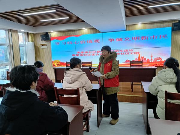 为进一步深化辖区居民对社会主义核心价值观的理解,倡导文明新风。12月26日,六安金安区三里桥街道落星庙社区新时代文明实践站开展“学习核心价值观 争做文明新市民”主题活动。