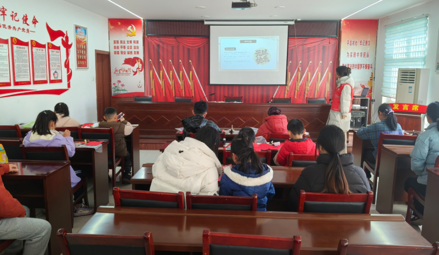 “知”元旦渊源,品文化之味。活动开篇的“元旦知识小课堂”,成了孩子们走进传统节日的“启蒙钥匙”。志愿者们摒弃枯燥说教,以趣味动画短片为载体,串联起元旦的历史脉络——从先秦时期岁首“大蜡祭”的庄重仪式,到汉代正式确立正月初一为元旦的历法传统,再到如今家家户户挂灯笼、贴春联、吃团圆饭的现代年俗,厚重的文化历史在画面流转中变得生动可感。课堂上还设置了互动问答环节,“元旦为什么要贴福字?”“古代人怎么庆祝岁首?”孩子们踊跃举手,答对的小朋友能收获精美小贴纸,知识在欢笑中传递,对传统节日的热爱也悄然在心底萌芽。