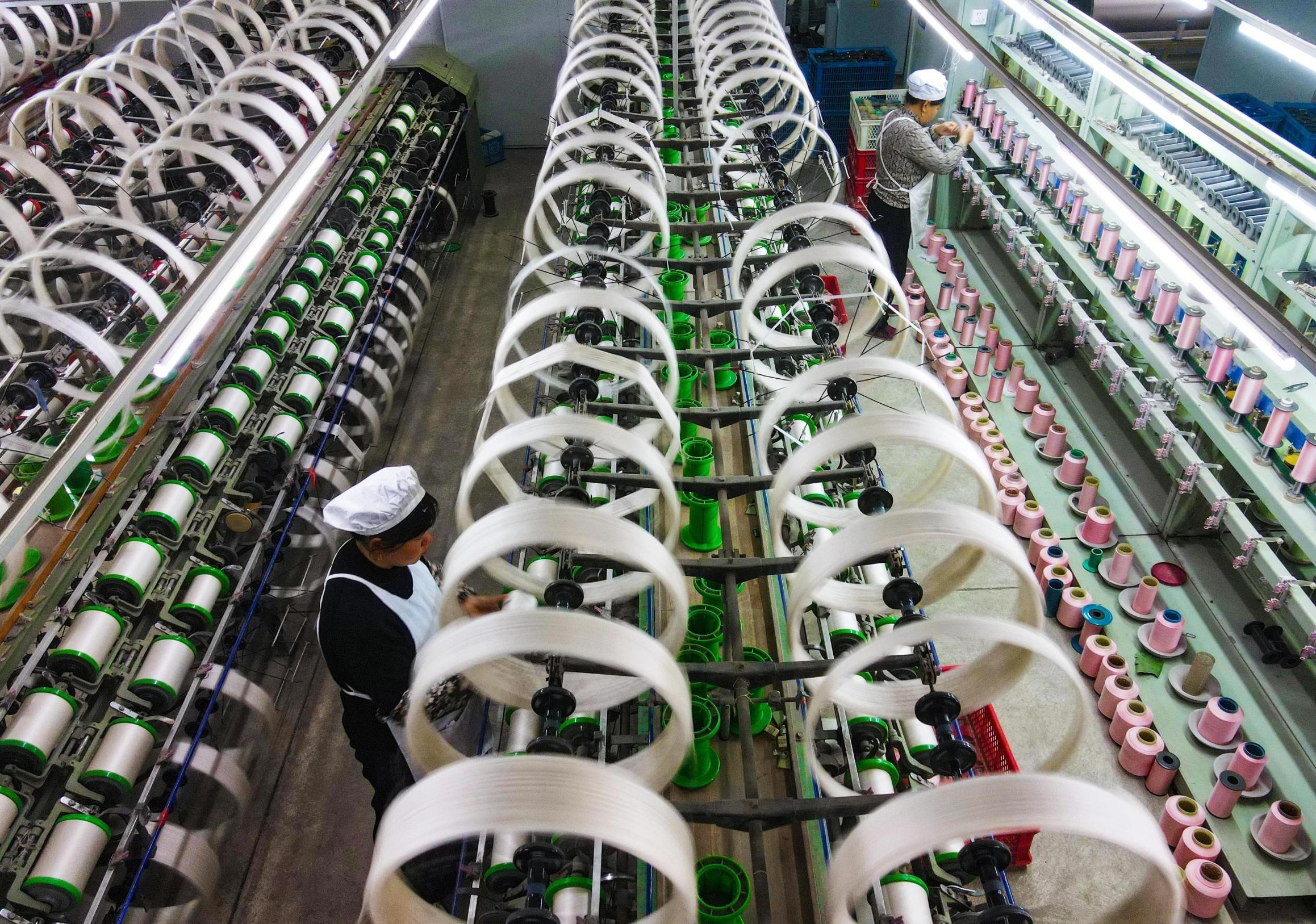 3月25日,岳西县一家丝绸企业生产车间内,工人在生产线上忙碌。近年来,岳西县大力发展蚕桑产业,形成集养蚕、缫丝、制绸、加工于一体的全产业链,产品销往多个国家和地区。